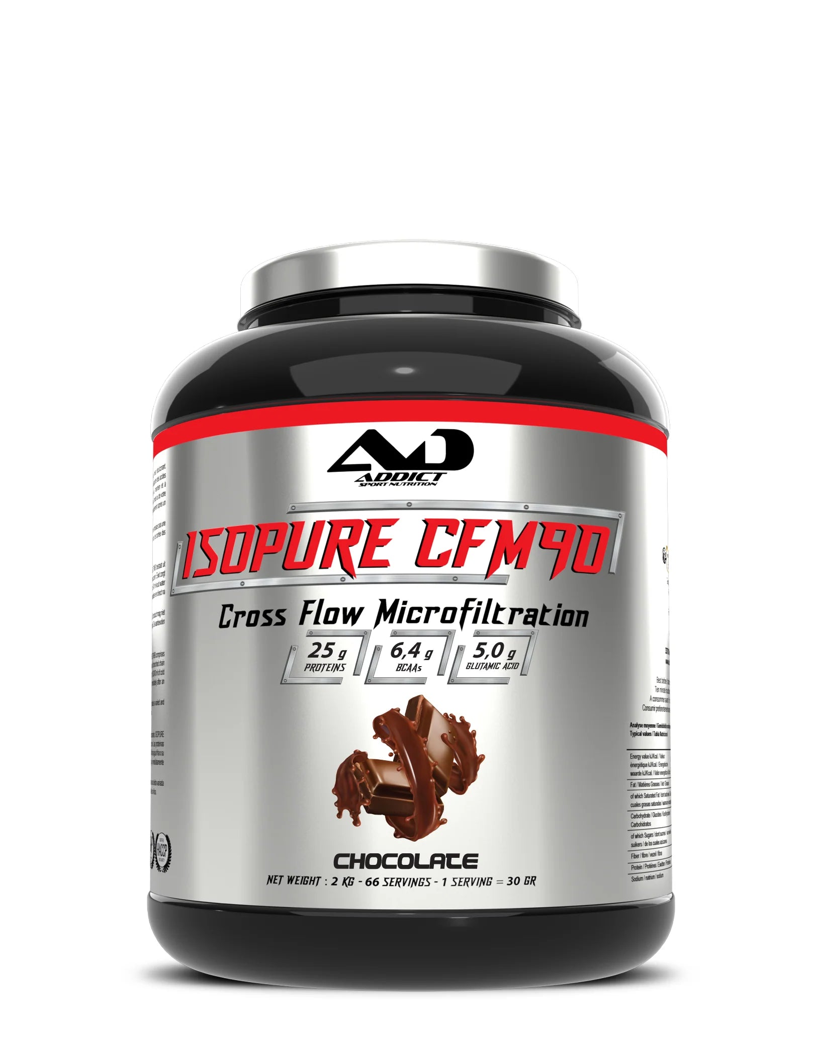 Isopure CFM90 est une protéine de lactosérum concentrée à 90% (matière sèche) et légèrement hydrolysée afin d'obtenir un taux de protéine très élevé.